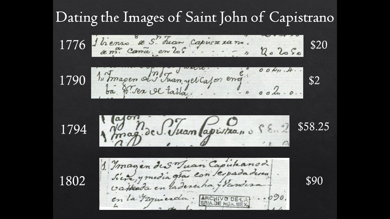 All of this changed when a fellow researcher and friend, Dr. Marie Duggan, recently found the account books for Mission San Juan Capistrano in Mexico City. These books were maintained by the syndic or habilitado general (paymaster), of all goods sent to California during the colonial era at the mission (roughly 1776-1821). Dr. Duggan graciously sent me scans of the account books and I’ve teamed with the mission’s archivist, Jennifer Ring, to use the mission’s records to round out the research. This is the second in a series of articles dating extant objects at the mission and telling their stories (please see Mission San Juan Capistrano - Dating the Artifacts #1).